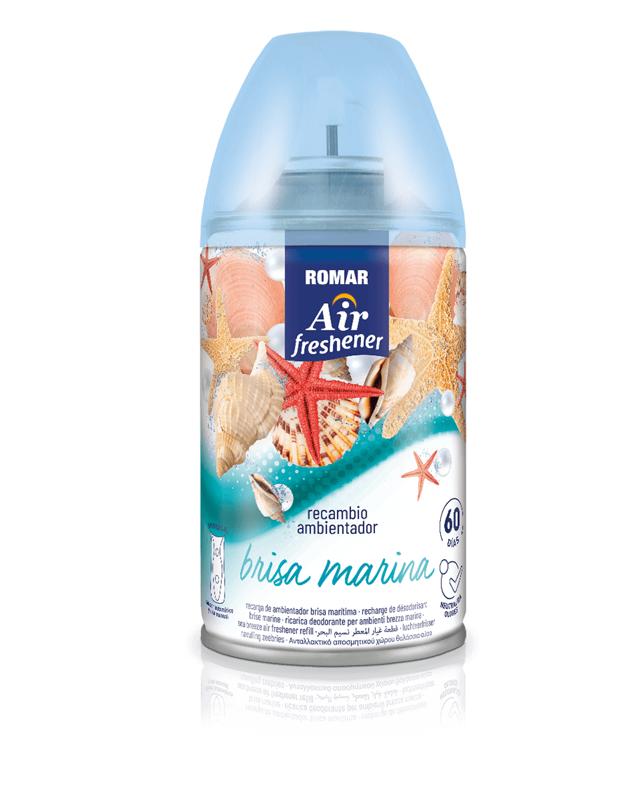 Refill air freshener spray that can be used manually or with any automatic aerosol diffuser. Eliminates odors by providing a pleasant natural freshness during 60 days.