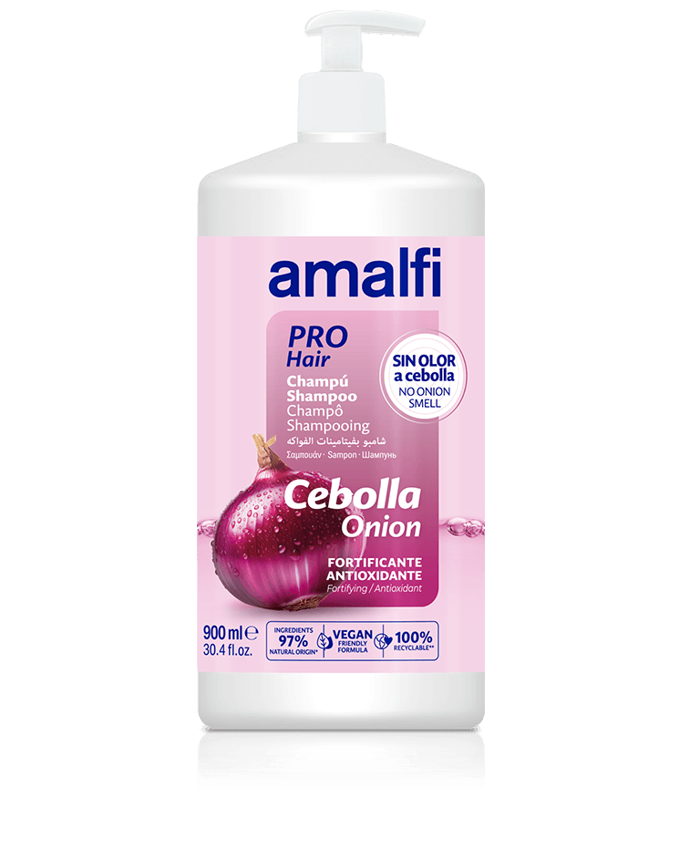 Champú formulado con extracto de cebolla que limpia eficazmente el cabello, ayudando a fortalecerlo y aportándole brillo. Su uso frecuente deja el cabello suave, manejable y con sensación de vitalidad. No deja olor a cebolla.